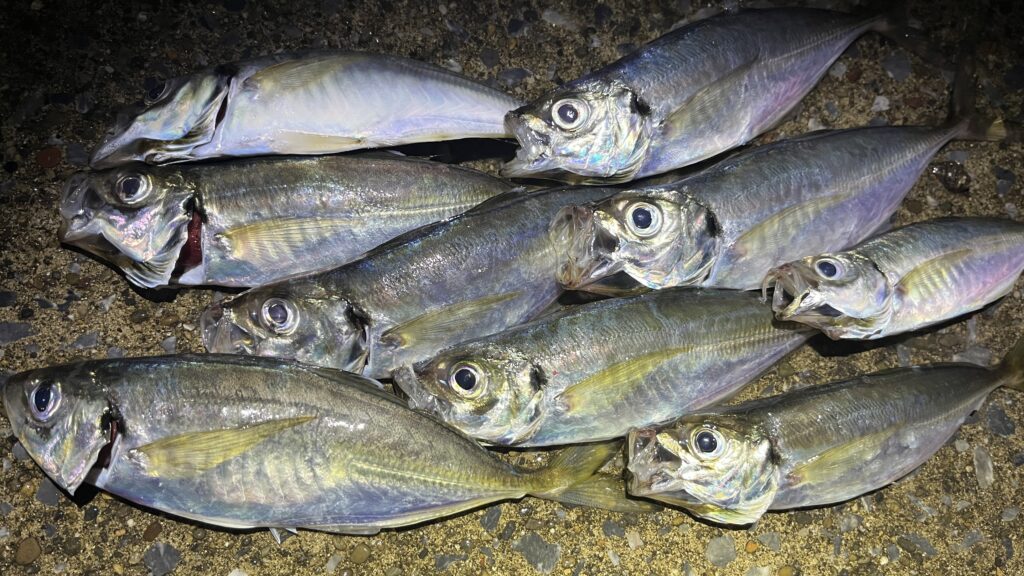 その後も2匹程度の再現性のあるアジングを展開し、いい感じでアジをキャッチ!そこそこイージーなアジングもいいなぁと思いながらも、稀にマメサイズ、そして26cmの体高のある良型アジもキャッチした。