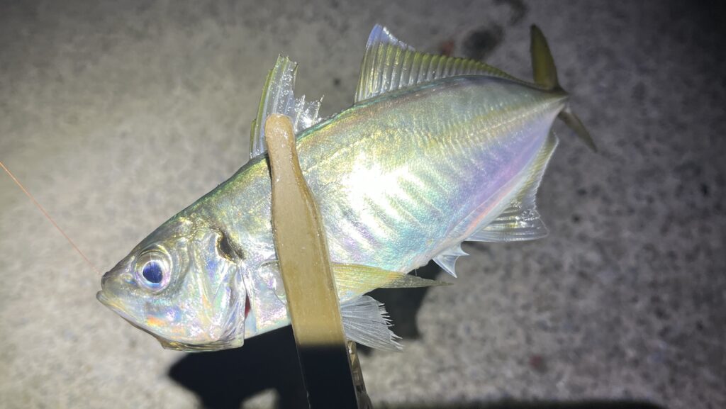 その後、中層域でもアタリが出るようになり小さいアジをコンスタントにヒットさせる。
