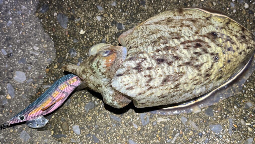 後半、次男はTKさんの子どもと、にゃんこ大戦争の話等で盛り上がる中、エギングをしていたけれど、釣果はスミイカ1杯のみだった。