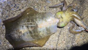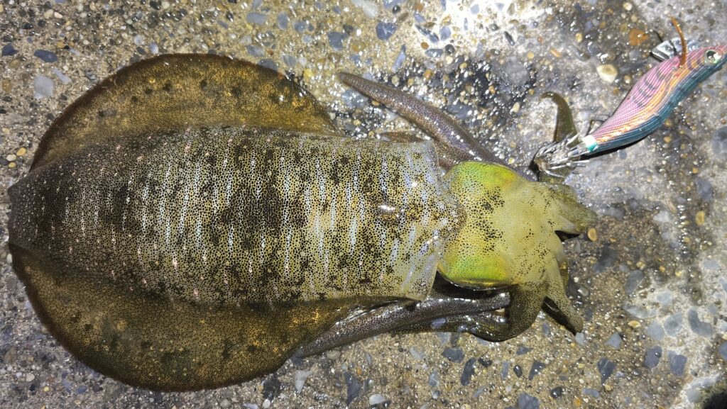今回のアオリイカの群れのサイズがまぁまぁだったのか300g超えが2杯釣ることができた。