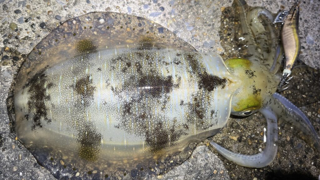 アオリイカらしい引きでドラグをジージーならず重みと強い引き!これはサイズが期待できそうだ。