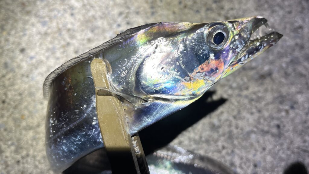タチウオテンヤにキビナゴがまだ付いていたので、こちらもラスト3投ルールを発動させる。