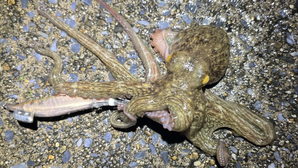 ここ最近アオリイカのサイズが上がってきていたのに、こんなに小さいアオリイカばかりなんだ?ついでタコも。
