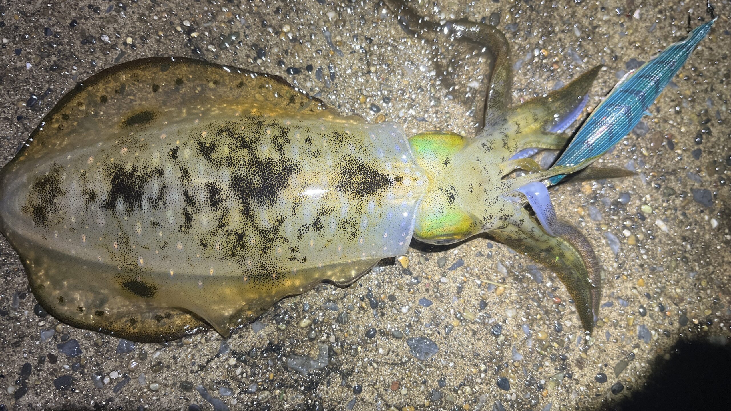 ここ最近アオリイカのサイズが上がってきていたのに、こんなに小さいアオリイカばかりなんだ?ついでタコも。
