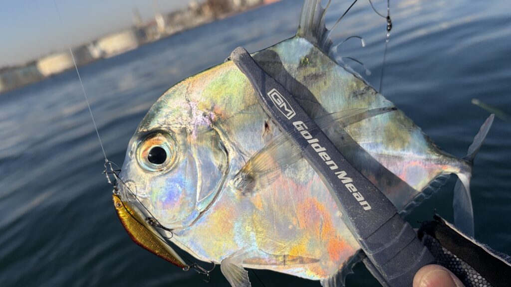 どうしてもロッドの長さと柔らかさで同様の誘い辛さはあるけれど、釣れている人の真似をするしか今の僕のメッキの引き出しはない。そして、乗合の人の真似を軸に、時折ミノーを使っての実績のある早巻き+トゥイッチでも誘う。1回バラしをする。