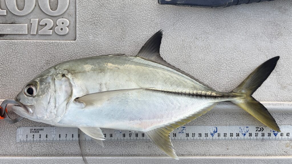 イトヒキアジは僕のイメージではボトムのイメージだったけれど、こんな表層まで追っかけてくるのか…と。
