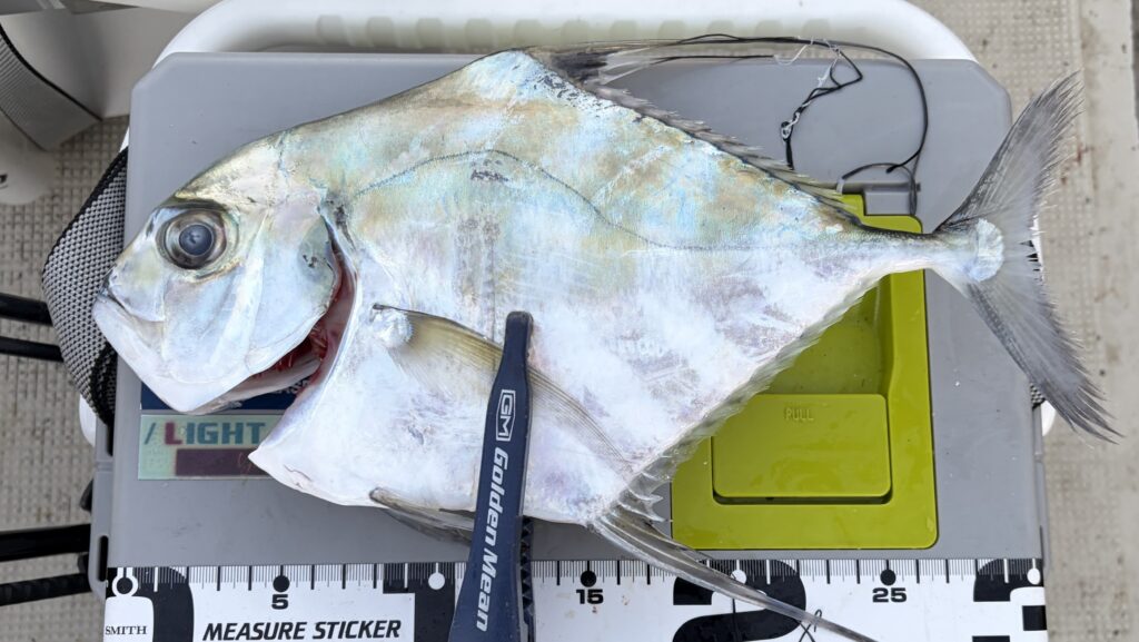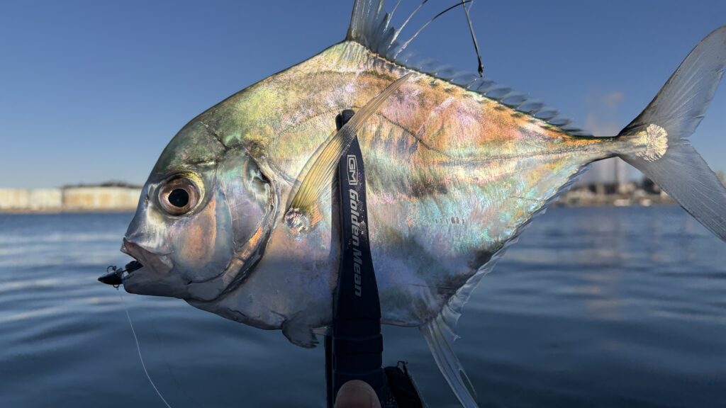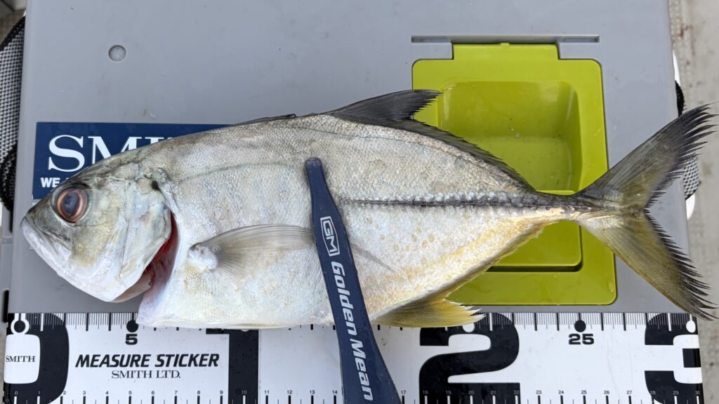 あーこれこれ!といなしつつ巻き上げキャッチしたのは自己記録となる32cmのメッキ!(ロウニンアジ)だった。