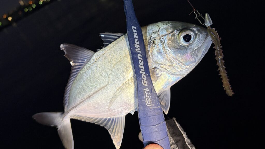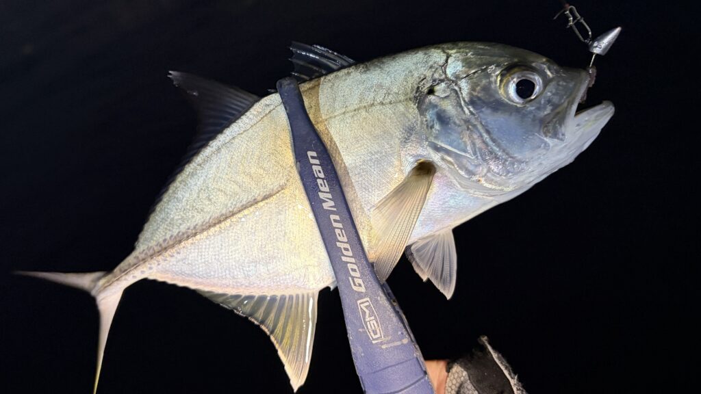 夜は釣れないイメージだったけれど、メバリングと同じ誘い方でヒットした。