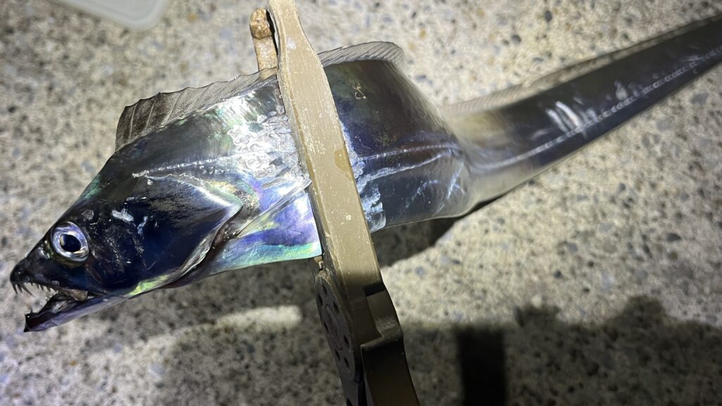 まぁ、ここまできたら仕方がないので、巻き上げの様子を見ることにし、見事に太刀魚を釣り上げた!