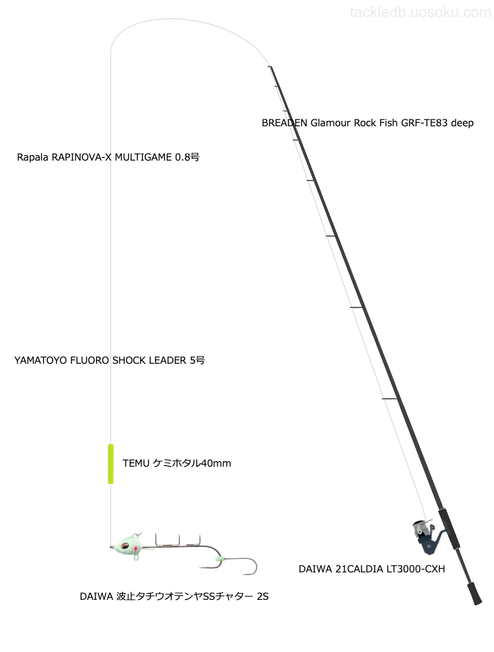 僕のタチウオテンヤの探り方はなんとなく、エギングと似た探りであっても、探り方の意図は異なる。エギングはしゃくりあげて、レンジを動かしてフォールで探る。タチウオテンヤは一定のレンジを探るために巻きとフォールを織り交ぜるも、巻きの際に少しでもアピールするために、ロッドを少しだけしゃくりながら巻く。基本はいずれもリールを3回巻き、その都度ロッドを動かしている。更に言うならエギングはラインスラッグをしゃくりでラインを張らせるのに対して、タチウオテンヤはラインを巻いて引っ張る。