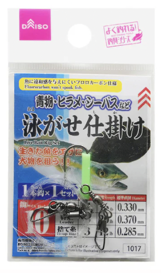 ここ何回かアジングをやっていて小さいアジをリリースしたら表層でシーバスが食うシーンを何度か見ていた。この日そのシーバスを狙うためにルアーではなくあえて初チャレンジとなる泳がせをチャレンジすることにしており、ダイソーで泳がせ仕掛けを購入していた。