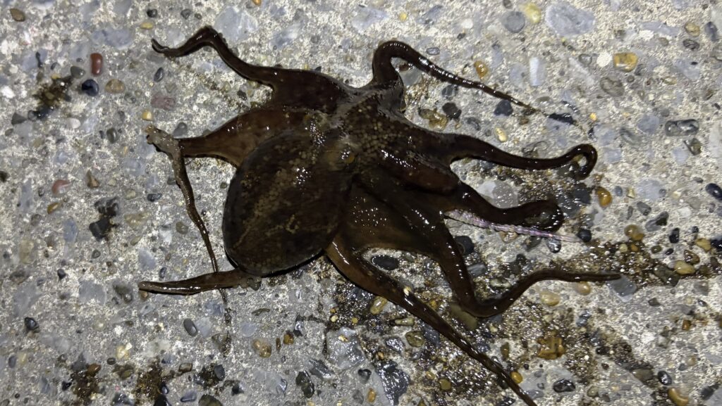 実はアジングで過去最小と思われるタコがヒットしており、四目達成状態。